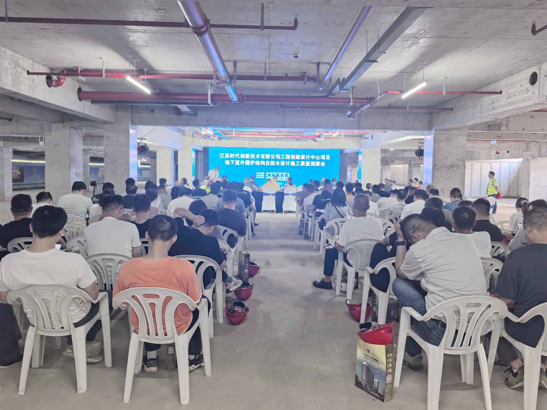 會上,大家首先參觀了該項目的防水施工現(xiàn)場,了解該項目具體防水施工措施亮點;項目負責人從混凝土結(jié)構(gòu)自防水方案、地下室自然通風方案、設(shè)備管線穿梁方案、水泵房設(shè)備優(yōu)化方案等幾個設(shè)計創(chuàng)新點和大家做了交流,得到大家的肯定。